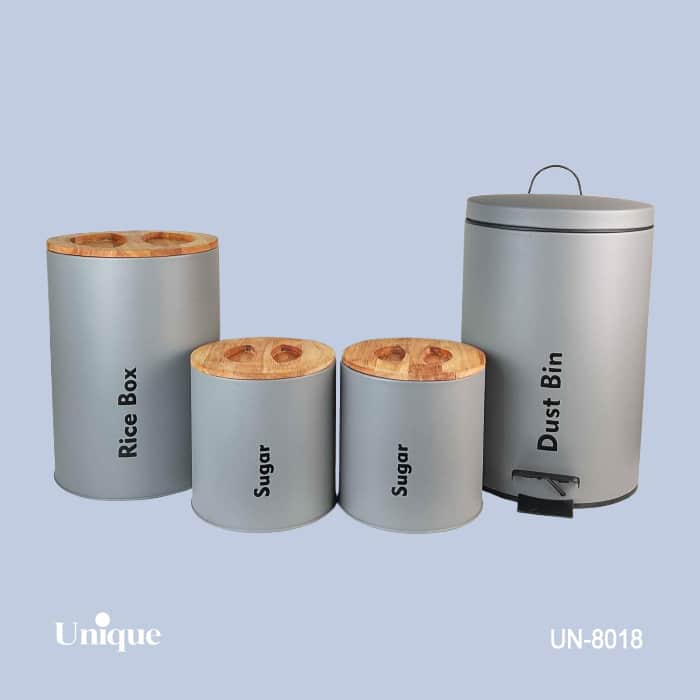 سرویس آشپزخانه 4 پارچه فیلی (طوسی)درب بامبو یونیک کد UN-8018