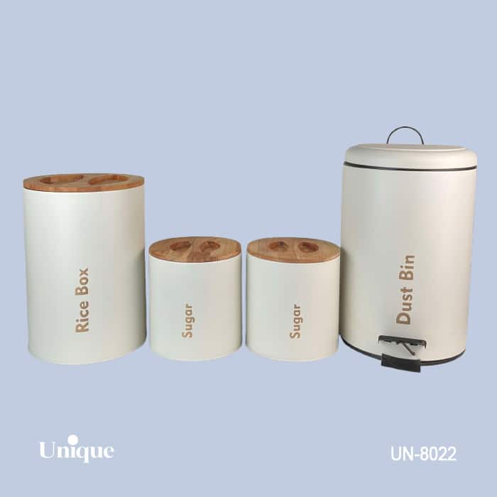 سرویس آشپزخانه 4 پارچه نباتی (کرم ) درب بامبو یونیک کد UN-8022