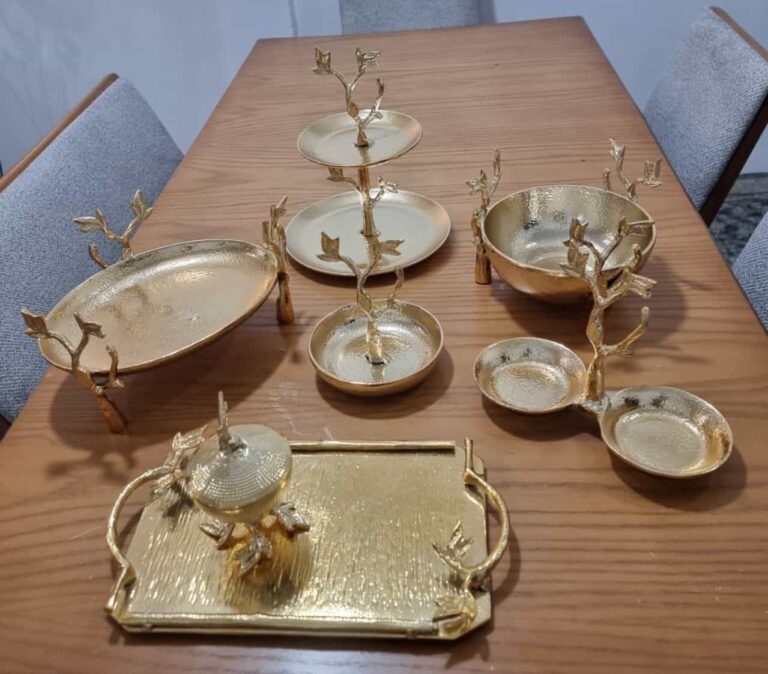 سرویس پذیرایی آلومنیومی درختی طلایی براق 7 پارچه کد DT78-00