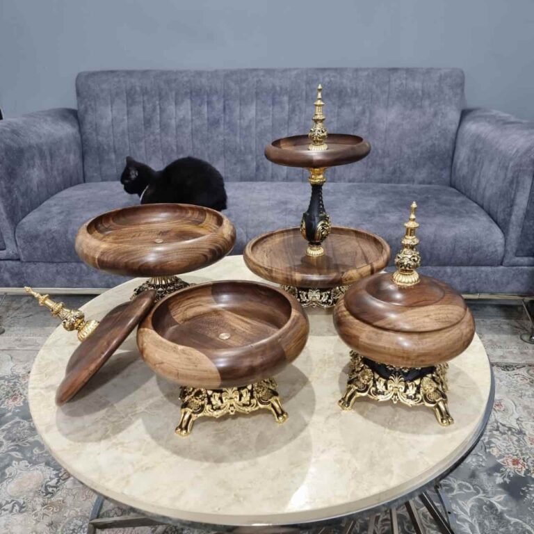 سرویس پذیرایی چوبی پایه سلطنتی ۴ تیکه انتخابی خاص برای افرادی است که به طراحی شیک،