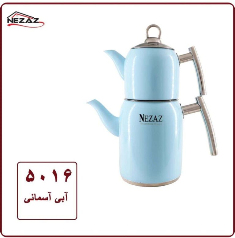 کتری قوری استوانه ای استیل رنگ پاستیلی آبی آسمانی نزاز کد 5016