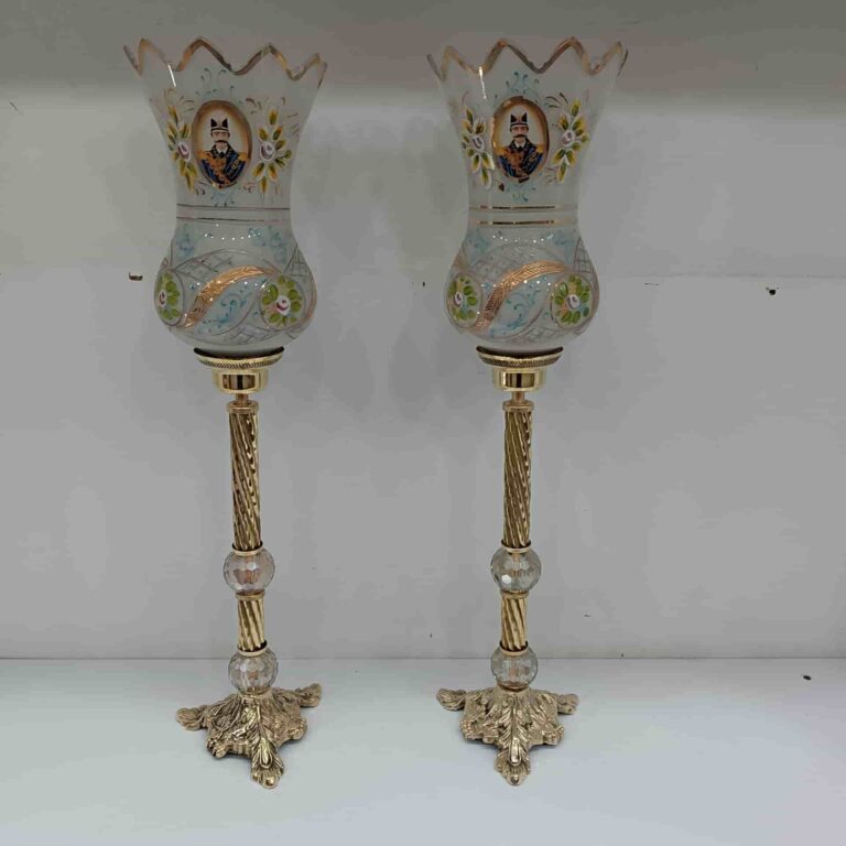 شمعدان لاله شاه عباسی سفید شیری پایه برنزی – آب طلا